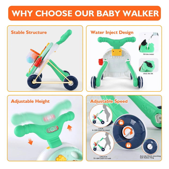 This versatile 2-in-1 walker and activity table keeps your baby moving and engaged with lights, sounds, and hands-on fun.Features• Transforms from walker to play table• Interactive buttons with lights and music•...