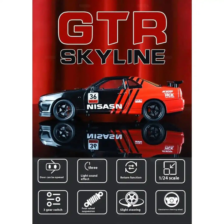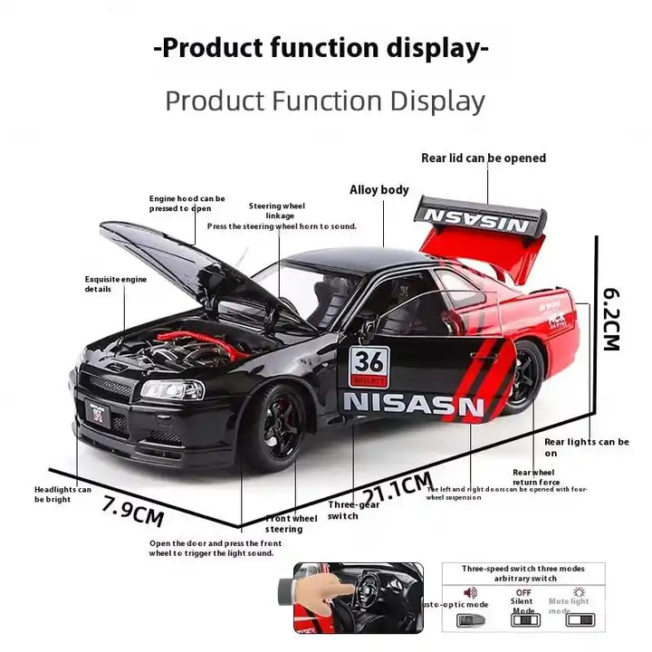 Detailed Craftsmanship: Authentic R34 body design with intricate interior and rims.