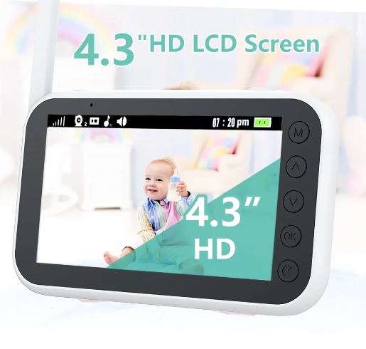 - 4.3" Large LCD Display for sharp, real-time baby monitoring