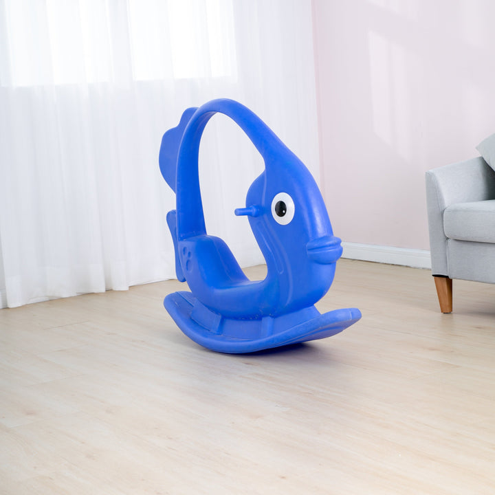 The Kids Fish Seesaw is a colorful, fun ride for toddlers. With dimensions of L-35" W-35" H-11", it’s safe, sturdy, and perfect for active play indoors or outdoors.