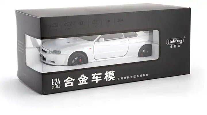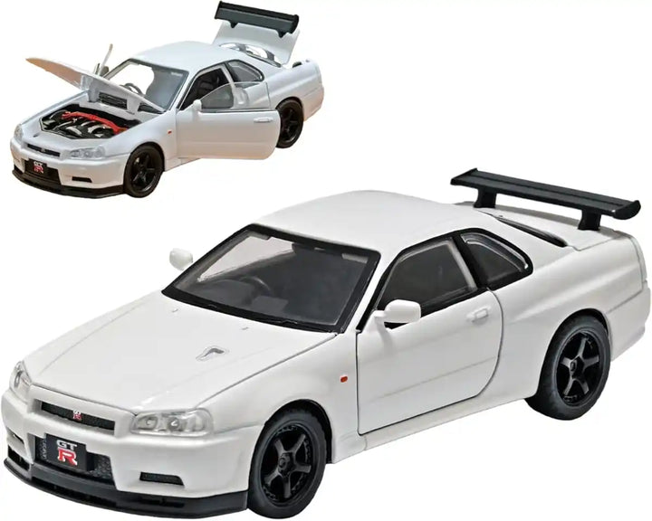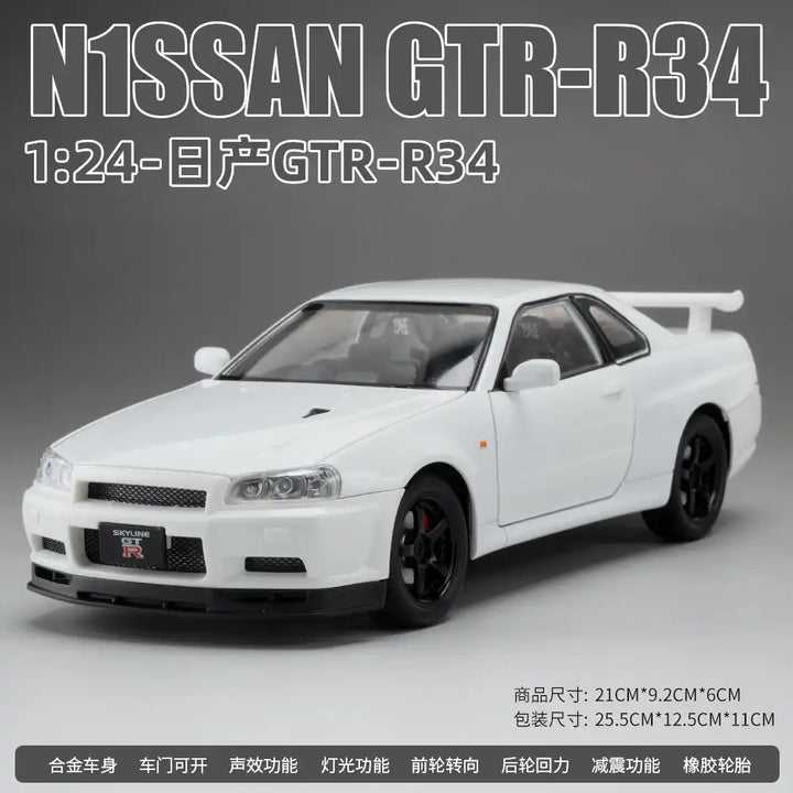Nissan Skyline GTR R34 Diecast Model 1:24 – White Edition with Lights & Engine Sound